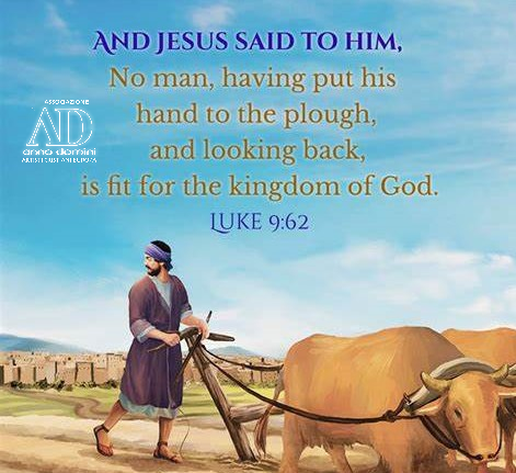 Quando «mettiamo mano all’aratro» dobbiamo essere pronti per una vita di relazione con Cristo e per seguire Cristo. Lui ha pianificato la nostra vita di servizio e trasformazione dall’inizio alla fine, ed è contento quando mettiamo mano all’aratro, ma non diventiamo come quei semi gettati su un terreno superficiale o roccioso che sembrano gioire subito in Cristo, solo per poi cadere quando diventa una lotta o ci annoiamo.